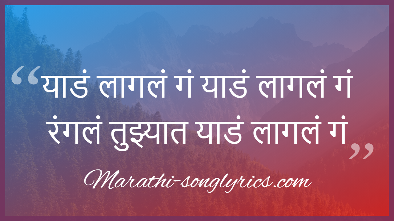 Lyricsbroker - याडं लागलं गं याडं लागलं गं rangalan tujhyatan yaadan laagalan gan vaas hyo usaatan yei kasturichaa chaakhalanyaa waaran guadan laagalan gan chand bhaasato disaach maavalaya laagalan aas lagali manaat kalwaya laagalan याडं.